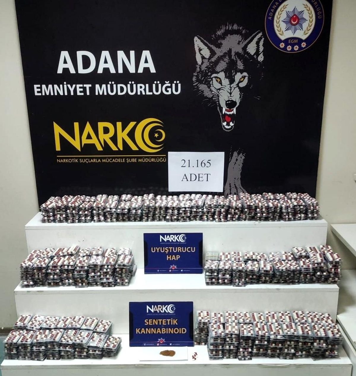 Adana Emniyet Müdürlüğü Narkotik Suçlarla Mücadele Şube Müdürlüğü ekipleri, uyuşturucuyla mücadele kapsamında çalışma yaptı. Ekiplerin merkez Seyhan ilçesine bağlı Namık Kemal Mahallesi'nde bir ikamete düzenlediği operasyonda yapılan aramada 21 bin 165 uyuşturucu hap ile 3,75 gram bonzai ele geçirildi. Olayla ilgili gözaltına alınan T.Y. çıkarıldığı mahkemece tutuklandı. Şüphelinin ifadesinde hapları toplu şekilde ucuza satın aldığını ve kullanıcı olduğunu söylediği öğrenildi.