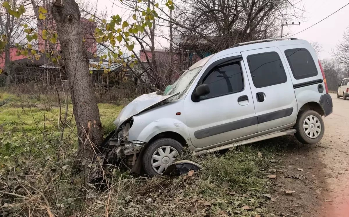 Ağaca çarpan hafif ticari araçtaki anne ile kızı yaralandı