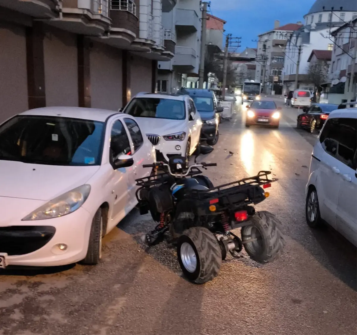 EDİRNE'nin Keşan ilçesinde askeri araç ve park halindeki otomobile çarpan ATV'nin sürücüsü D.K. yaralandı. D.K.'nin, 2.03 promil alkollü olduğu belirlendi.