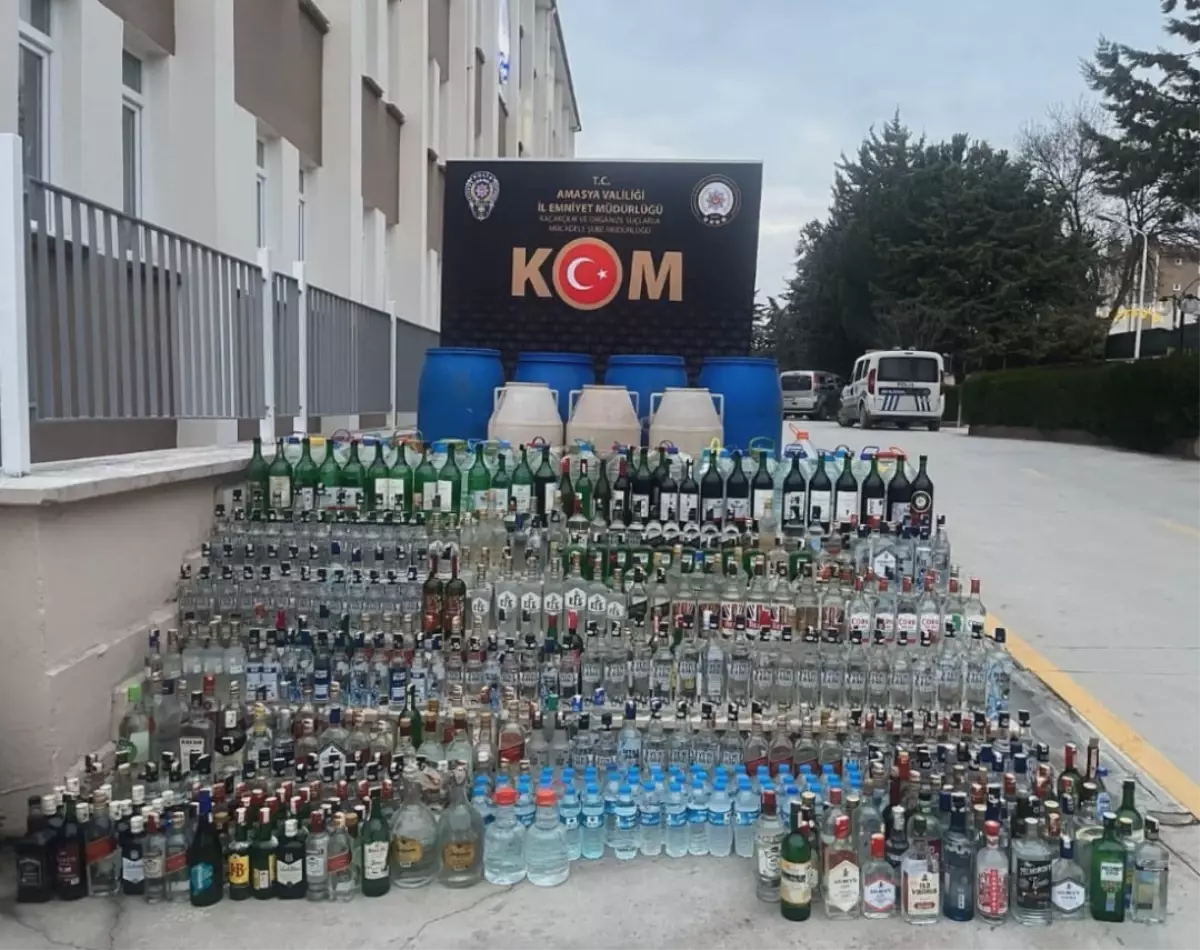 Merzifon ilçe Cumhuriyet Başsavcılığı koordinesinde, KOM Şube Müdürlüğü ve Merzifon Asayiş Büro Amirliği ekiplerince yılbaşı öncesi kaçak alkol satışını önlemeye yönelik yürütülen müşterek çalışma kapsamında Merzifon ilçesinde H.K. ve M.K.'nın il dışından temin ettiği etil alkolü kullanarak sahte kaçak alkol üreterek satış yaptığı bilgisi üzerine çalışma yürüttü. Ekipler, şüphelilerin tespit edilen ikametlerine operasyon düzenledi. Yapılan aramalarda 550 adet şişelenmiş mükerrer bandrollü kaçak/sahte alkol, 35 adet 0,5 litrelik pet şişede kaçak/sahte alkol ve 30 adet 5 litrelik bidonda kaçak/sahte alkol ele geçirildi. Olayla ilgili H.K. ve M.K. gözaltına alındı.