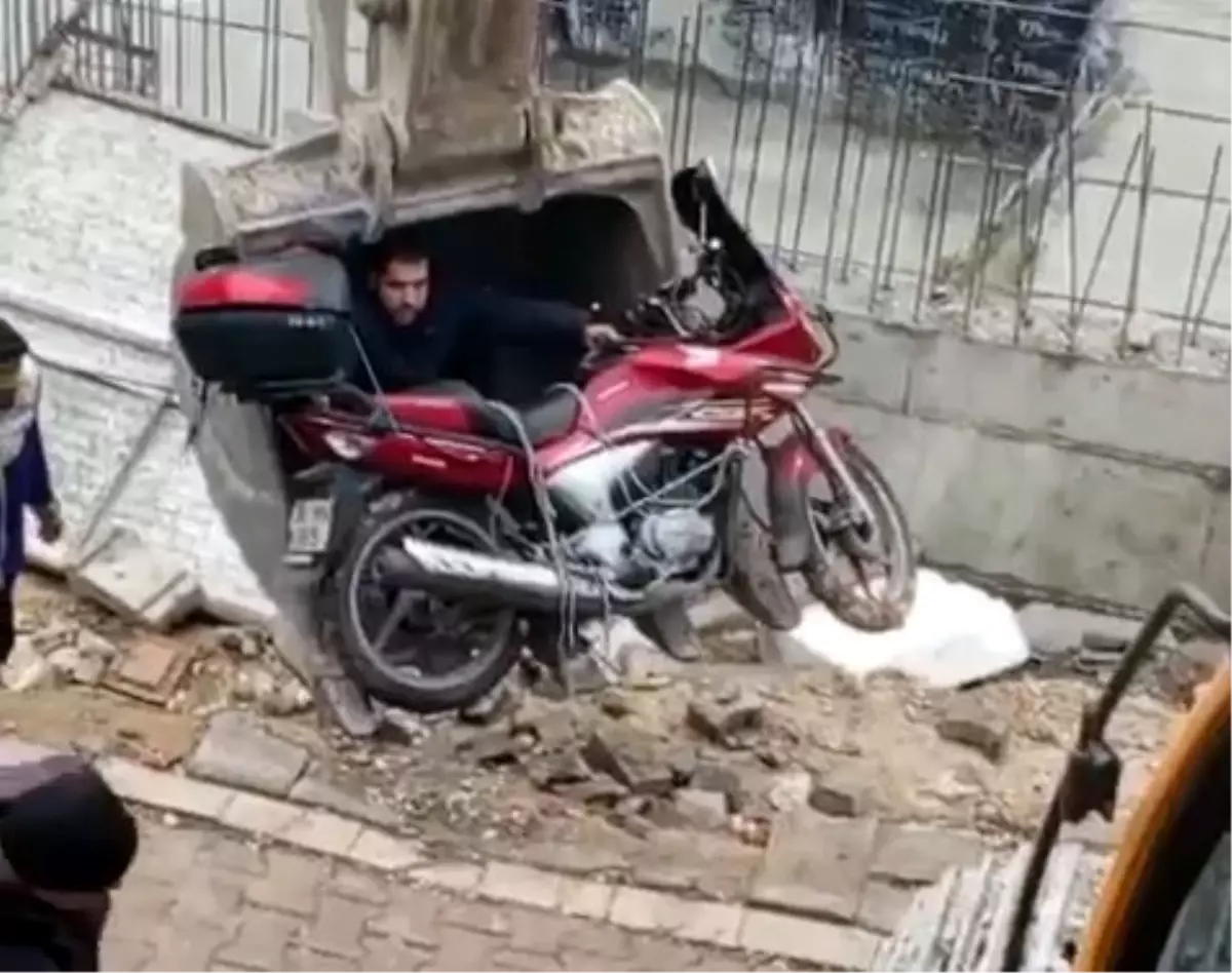 Olay, dün Cihangir Mahallesi'nde meydana geldi. Yol kenarına park edilen motosiklet, rüzgarın etkisiyle dengesini kaybederek bitişikteki inşaat alanına düştü. Motosikletinin düştüğünü fark eden sürücü, inşaatta çalışan işçilerden yardım istedi. Kendi imkanlarıyla motosikleti çıkaramayan işçiler, inşaatta kullanılan iş makinesini alana getirdi. Kepçeye binerek motosikletinin bulunduğu alana inen sürücüye işçiler de yardım etti. Motosikletin yeniden düşmemesi için sürücü gidon ve gövdesini tutarken, kepçe operatörü motosikleti bulunduğu yerden çıkararak yol kenarına indirdi.