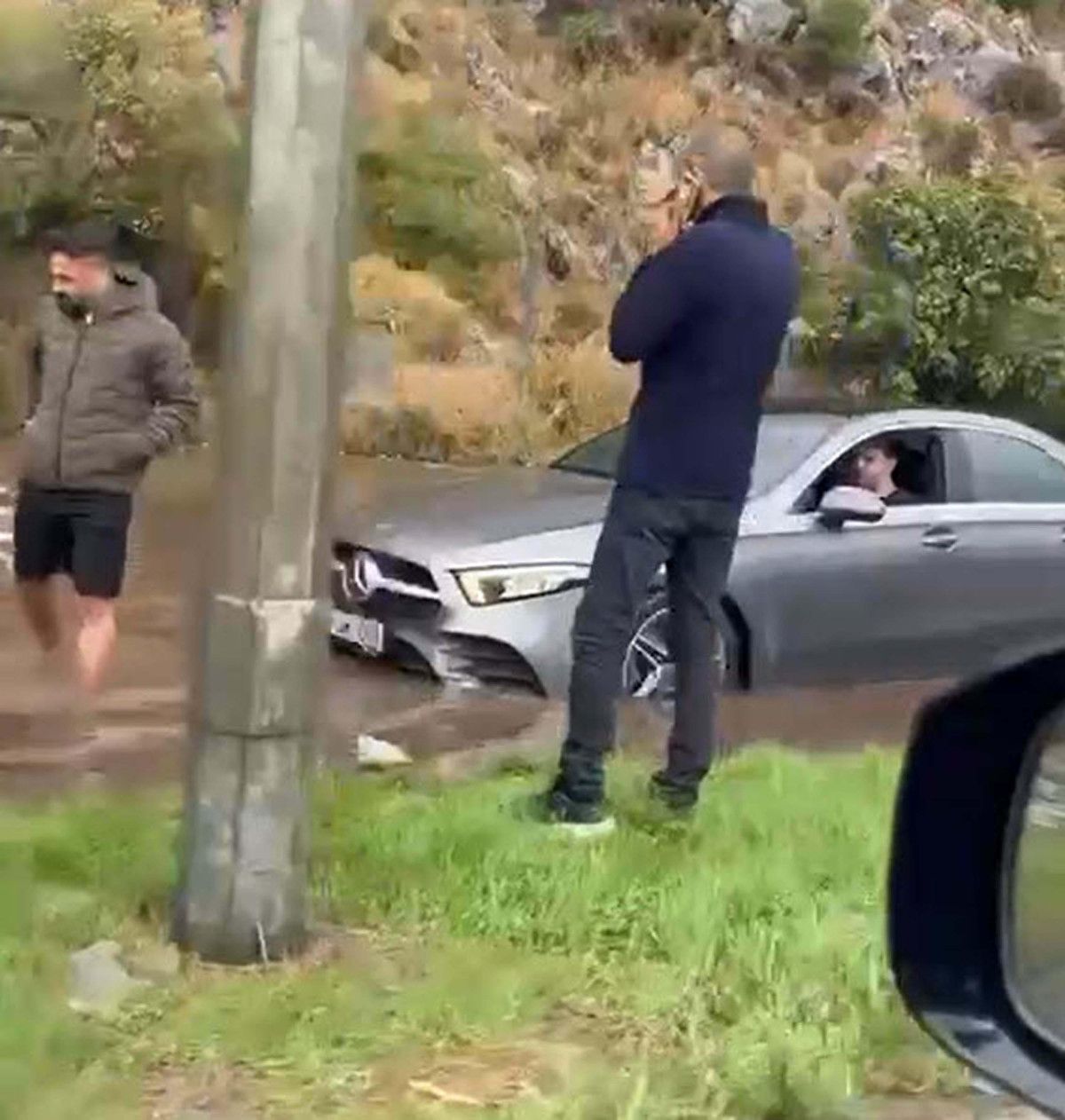 Sel sularının taşıdığı kum ve çakıl parçaları yola savruldu, bazı araçlar da suya gömüldü.