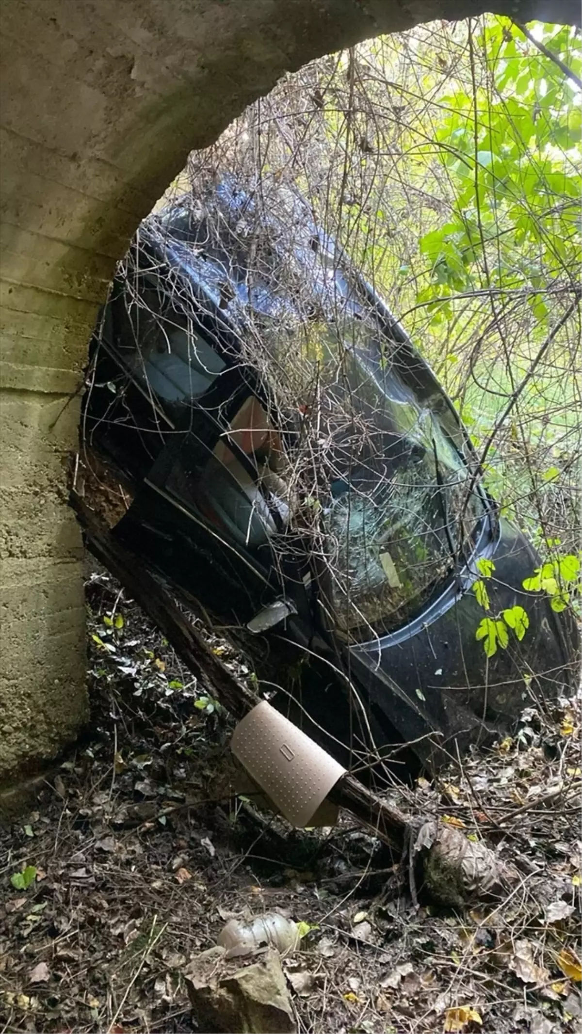 S.A. (58) yönetimindeki 57 AAV 169 plakalı otomobil, menfeze devrildi.