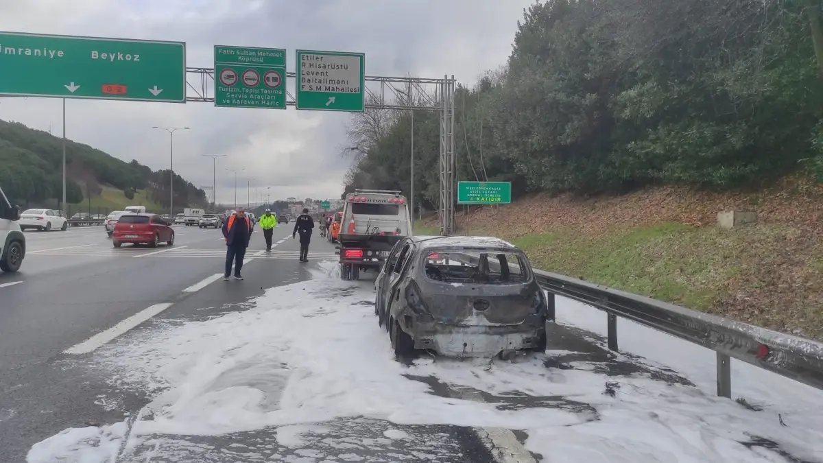 Beşiktaş TEM Otoyolu'nda seyir halindeki bir otomobilde çıkan yangın, itfaiye ekipleri tarafından kontrol altına alındı. Yangın nedeniyle yol trafiği yoğunlaştı.