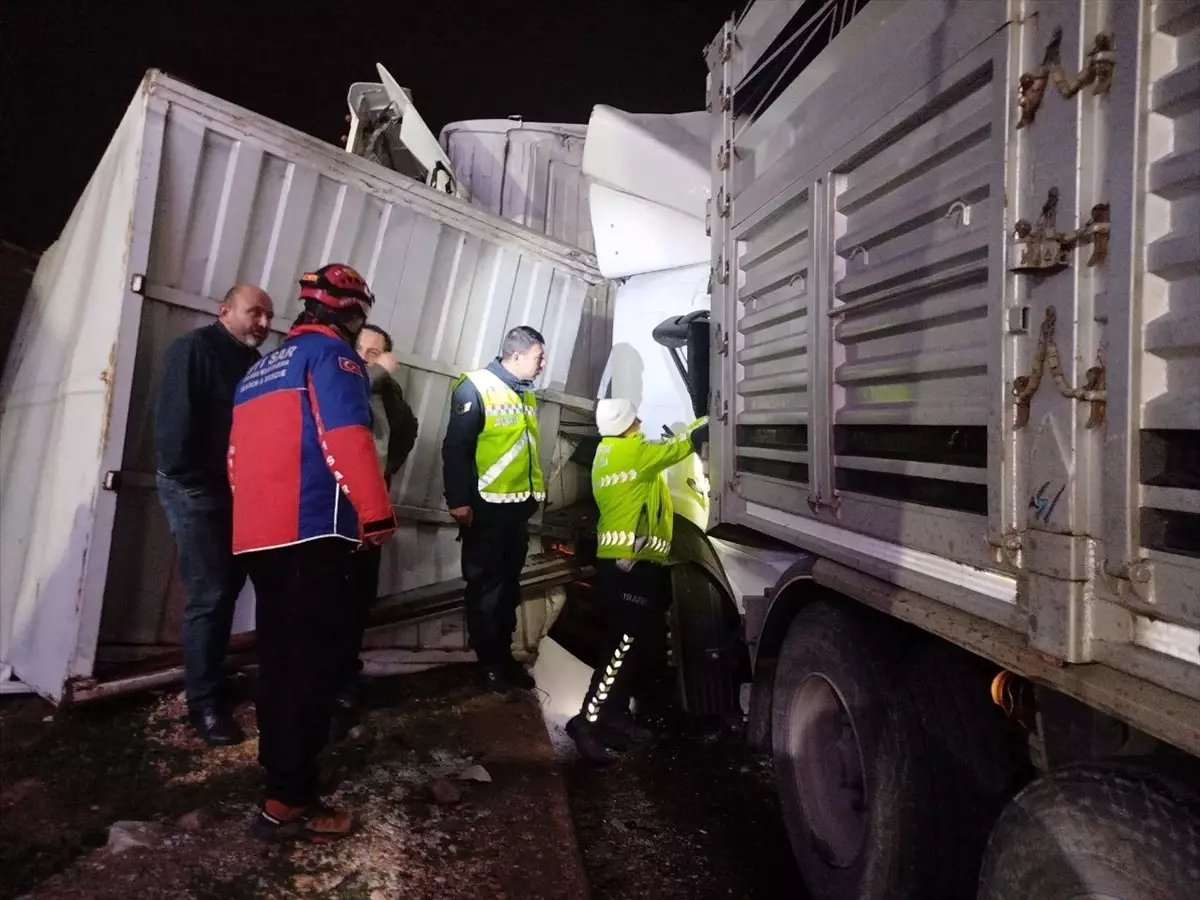 Çarpışmanın etkisiyle kontrolden çıkan Ç.Y. yönetimindeki tır, emniyet şeridinde park halindeki bir kamyona çarparak durdu.