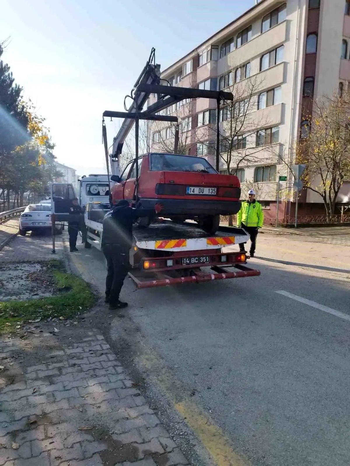 Bolu İl Emniyet Müdürlüğü Trafik Tescil ve Denetleme Şube Müdürlüğü ekipleri, cadde ve sokaklarda aylardır terk edilmiş durumda bulunan araçları tespit etti. Trafik polislerinin koordinesinden, trafik zabıtası ekipleri, düzenlenen tutanaklarla araçların kaldırılması işlemini başlattı. Zabıta ekiplerinin araç kaldırma vinçleriyle yapılan çalışmada, tespit edilen hurda araçlar tek tek toplandı. Şehir genelinde süren çalışmada toplanan araçlar, yediemin otoparkına götürüldü. Şehir merkezinin yanı sıra mahalle aralarında da devam edeceğini belirterek, uzun süre aynı noktada park edilmiş, hasarlı veya terk edilmiş araçların trafik düzenini bozduğunu ve kaldırılacağını öğrenildi. - BOLU