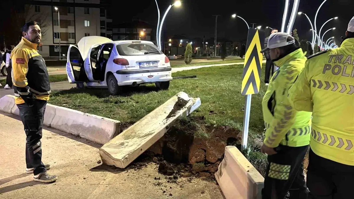Bolu'da kontrolden çıkan otomobil refüje çarptı