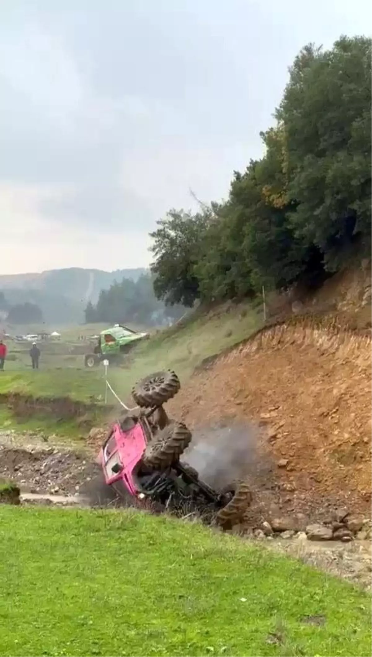 Bursa Demirtaş Baraj Alanı'ndaki engebeli parkurda off-road tutkunları zorlu etaplarda mücadele ederken, yarış boyunca adrenalin dolu anlar yaşandı. Yarış sırasında bir sürücü, aracının kontrolünü kaybederek takla attı. Dere yatağına yakın noktada gerçekleşen kazada ters durabildi. O anlar kameralar tarafından saniye saniye kaydedildi.