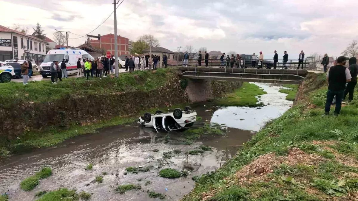 Bursa'nın İnegöl ilçesinde kontrolden çıkarak dere yatağına uçan otomobildeki 3 kişi yaralandı.
