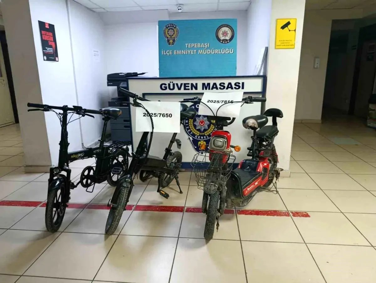 Tepebaşı İlçe Emniyet Müdürlüğü ekiplerince iki farklı bisiklet ve elektrikli bisiklet hırsızlığını aydınlatmak amacıyla çalışma başlatıldı. Çalışmalarda şüpheli S.E. ikametinde yakalanırken, yapılan detaylı aramada 1 elektrikli scooter ele geçirildi. Yine aramalarda elde edilen 2 adet bisiklet, elektrikli bisiklet ve elektrikli scooter sahiplerine teslim edildi. Ayrıca 1 elektrikli bisiklet sahibine teslim edilmek üzere polis taraf muhafaza alındı.