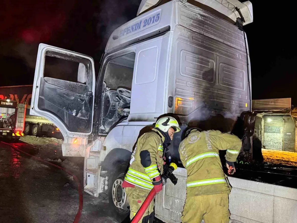 Araçtan alevlerin yükseldiğini gören Tır sürücüsü, aracı yol kenarına çekerek durumu itfaiyeye bildirdi. 112 Acil Çağrı Merkezine yapılan ihbar üzerine bölgeye sevk edilen itfaiye ekipleri tarafından söndürülen yangından sonra TIR'da büyük çapta maddi hasar oluştu.