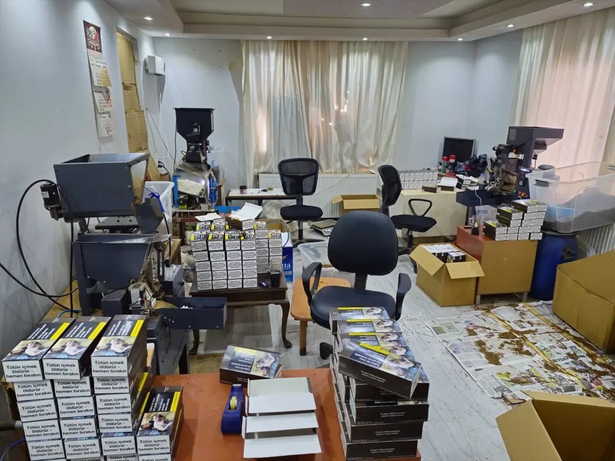 Narkotik köpeği desteğiyle yapılan aramada, 140 bini dolu olmak üzere 1 milyon 150 bin makaron, 2 ton kıyılmış tütün, 3 makaron doldurma makinesi, 1 kompresör, tütün kurutma düzeneği ve çok miktarda ambalaj paketi ele geçirildi.
