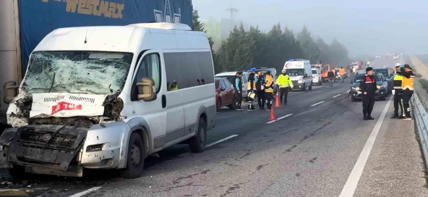 Edirne'de yoğun sis nedeniyle 10 aracın karıştığı zincirleme kazada 5 kişi yaralandı.