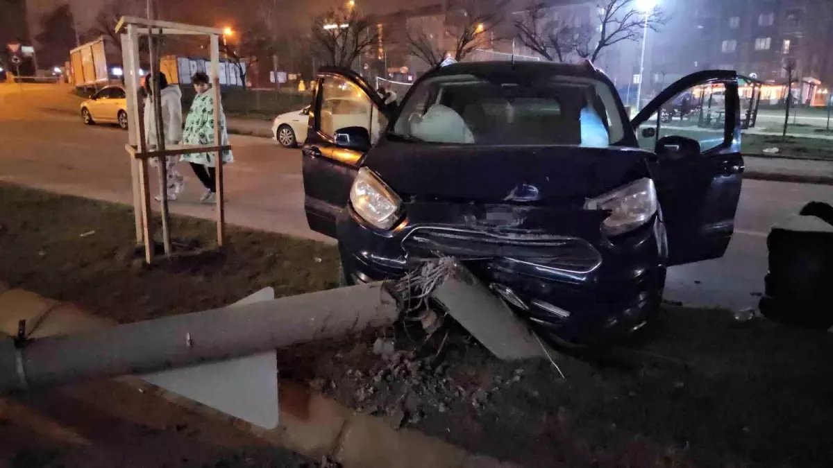 Edirne'de Y.C. yönetimindeki otomobil, direksiyon hakimiyetinin kaybedilmesi sonucu refüje çıkarak bir elektrik direğine çarptı. Kaza, bir iş yerinin güvenlik kamerasına yansıdı. Sürücü yara almadan kurtulurken, araçta büyük maddi hasar meydana geldi.