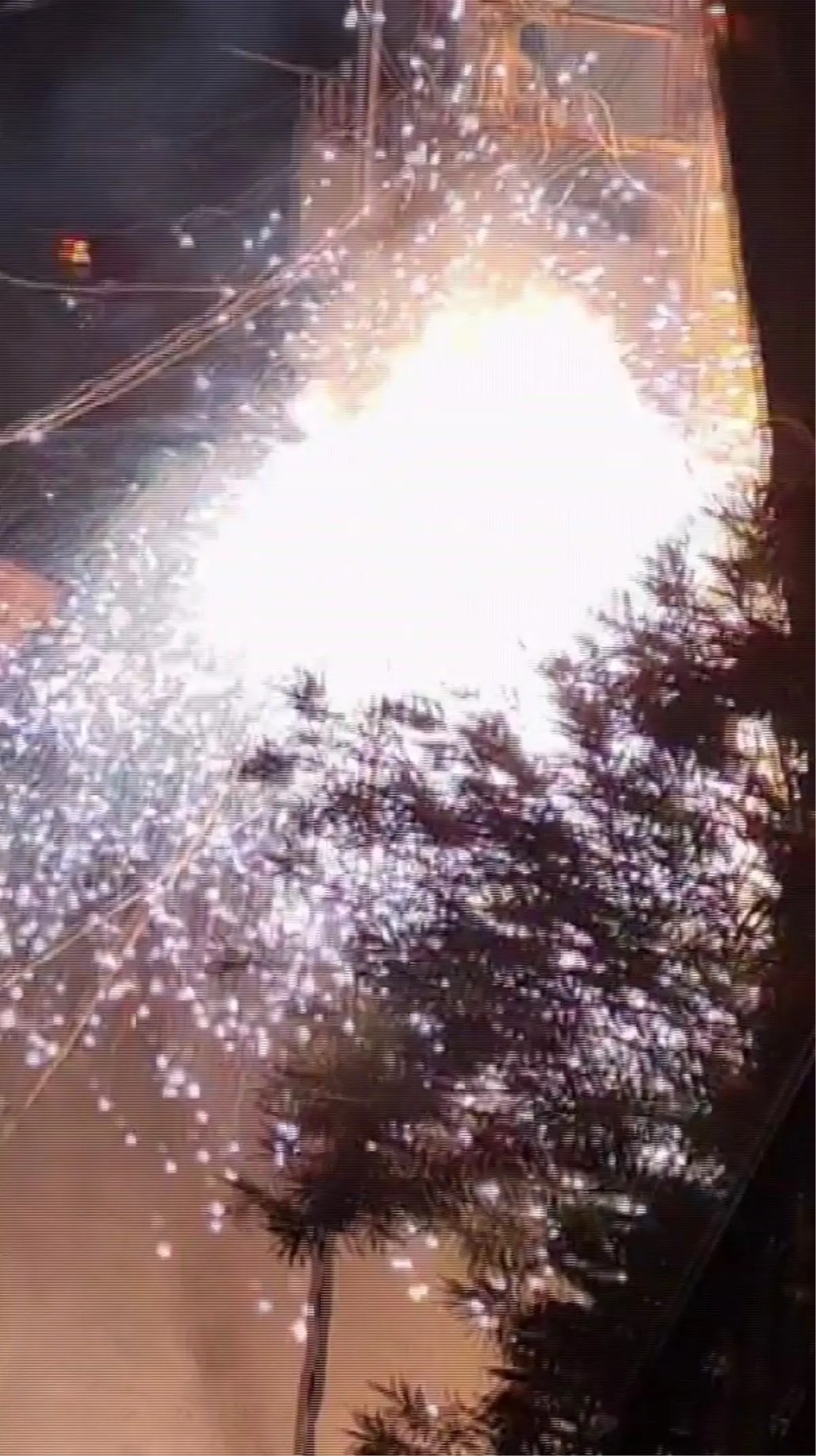 Hatay'da elektrik kablolarının havai fişek gibi patlamasıyla, gecenin gündüze döndüğü anlar kameraya yansıdı.