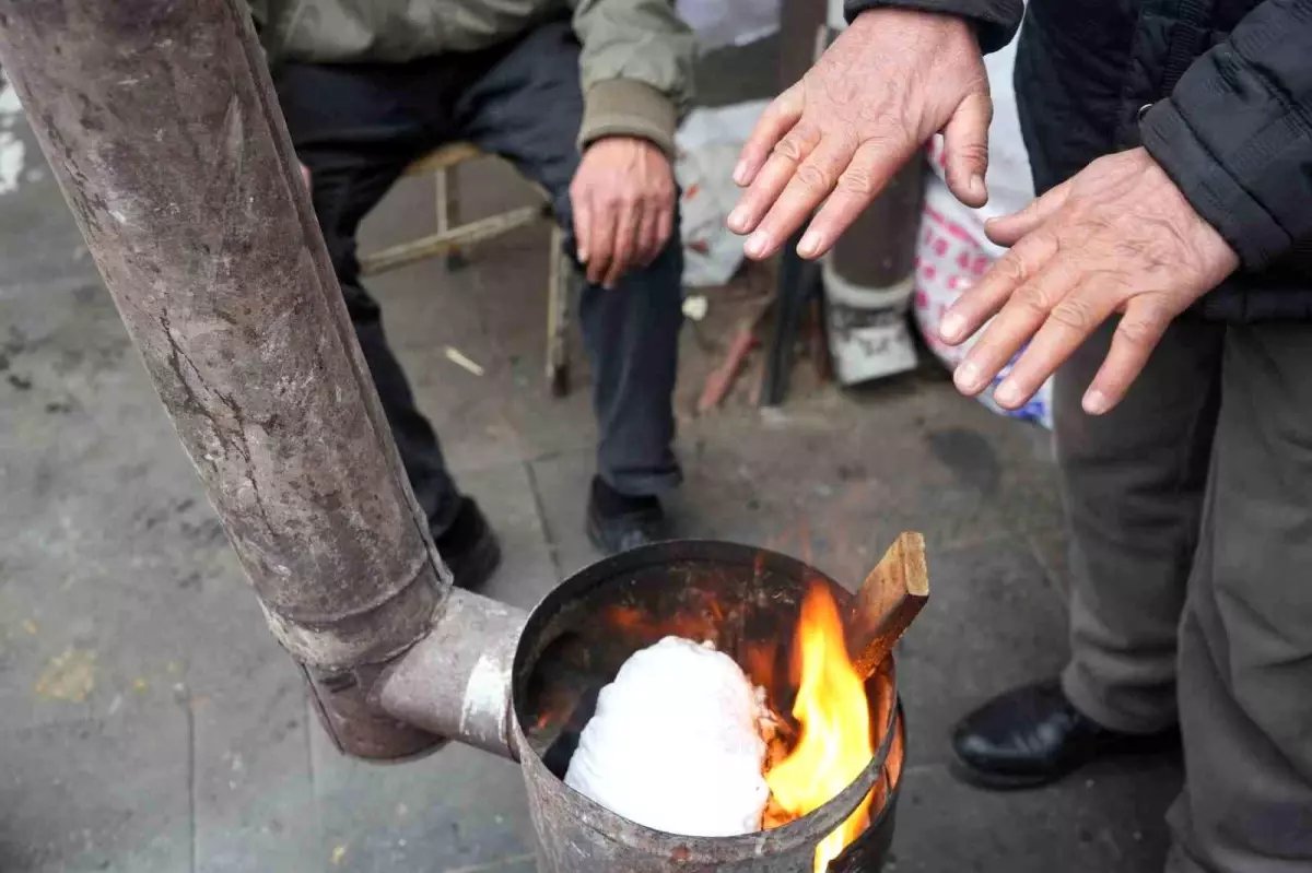 Erzincan'da gece ve sabah saatlerinde etkili olan eksi 10 derece soğuk, pazar esnafını önlem almaya zorladı. Esnaf, tezgah arkasında soba yakarak ve ürünlerini battaniyelerle örterek soğuktan korunmaya çalışıyor.