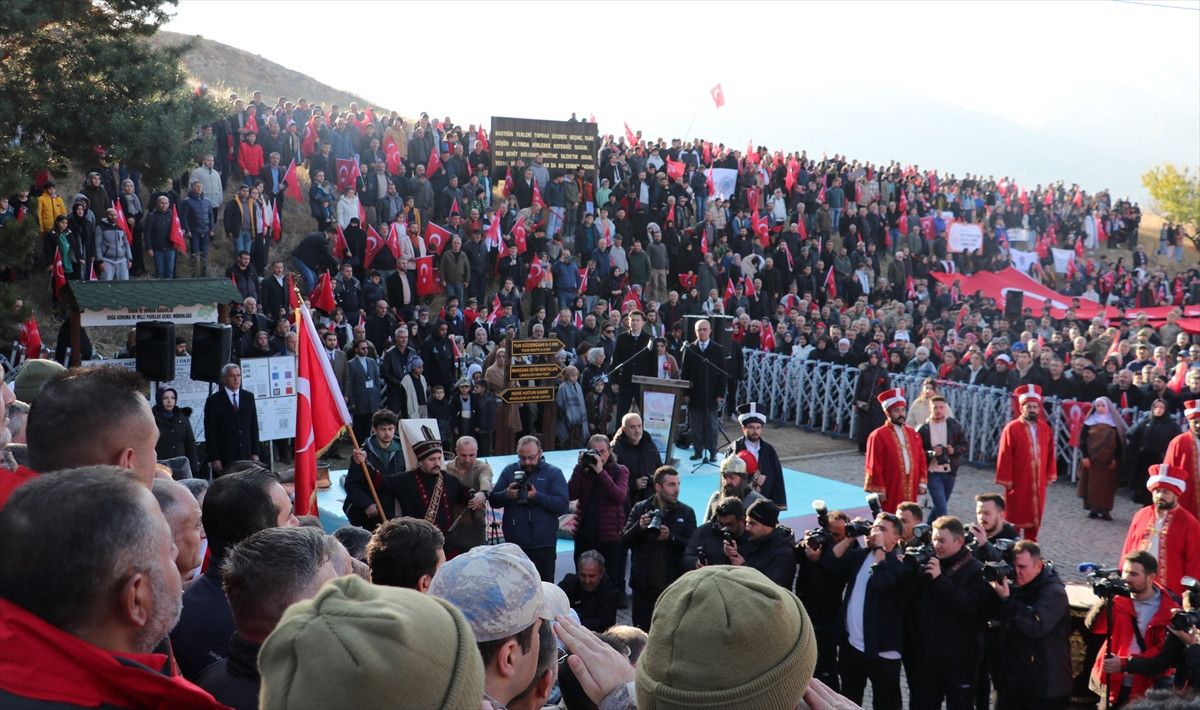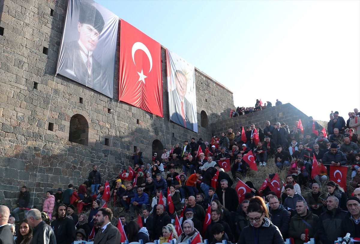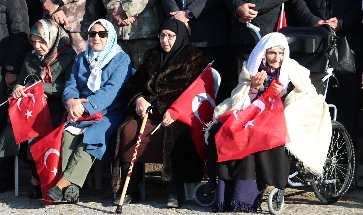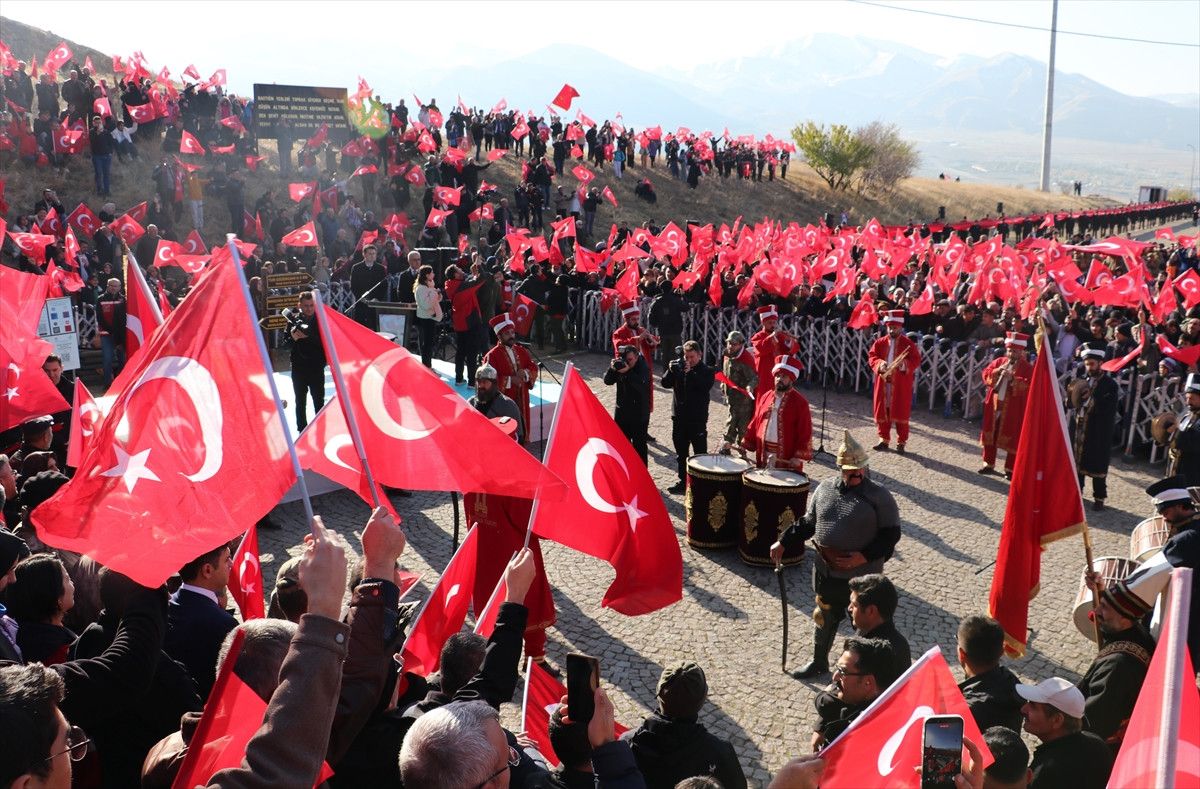 Çocuk ve yaşlıların da aralarında bulunduğu kalabalık, daha sonra sabahın erken saatlerinde soğuk havaya rağmen ellerindeki Türk bayraklarıyla Aziziye Tabyalarına yürüdü.