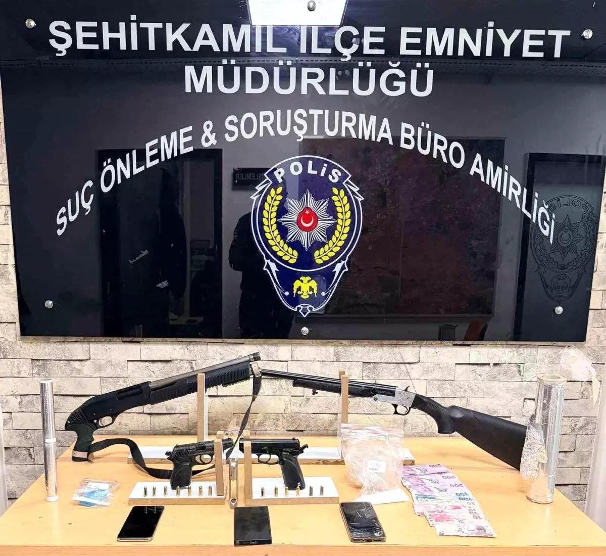 Gaziantep Emniyet Müdürlüğü'ne bağlı Şehitkamil İlçe Emniyet Müdürlüğü ve Şahinbey İlçe Emniyet Müdürlüğü ekipleri yasadışı silahlanmaya yönelik çalışma yaptı. Ekiplerin iki ayrı çalışmasında toplam 5 adet ruhsatsız tabanca, 3 adet kurusıkı tabanca, 2 adet ruhsatsız tüfek, 52 adet fişek ve 42.62 gram metamfetamin ele geçirildi.