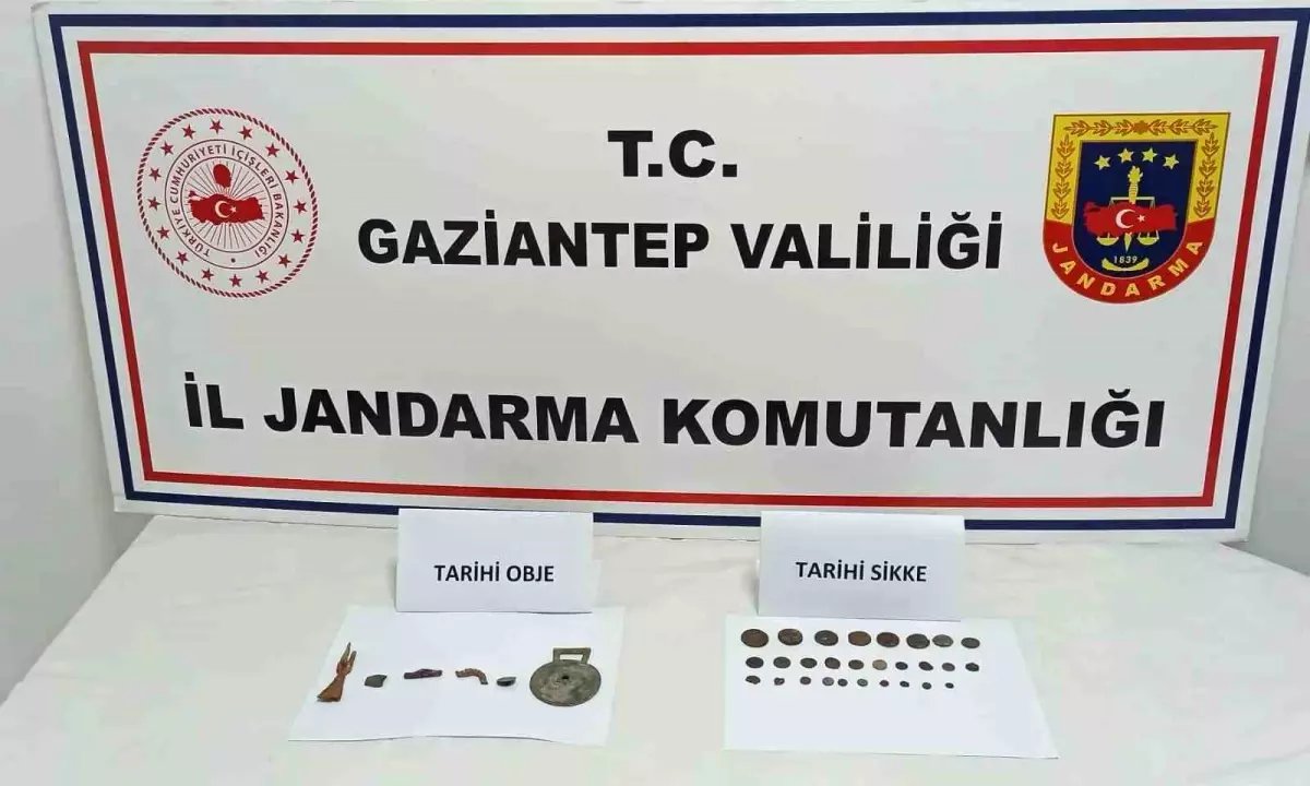 Gaziantep'te düzenlenen operasyonda, 28 tarihi sikke ve 6 metal obje ele geçirilirken, 3 kişi gözaltına alındı.