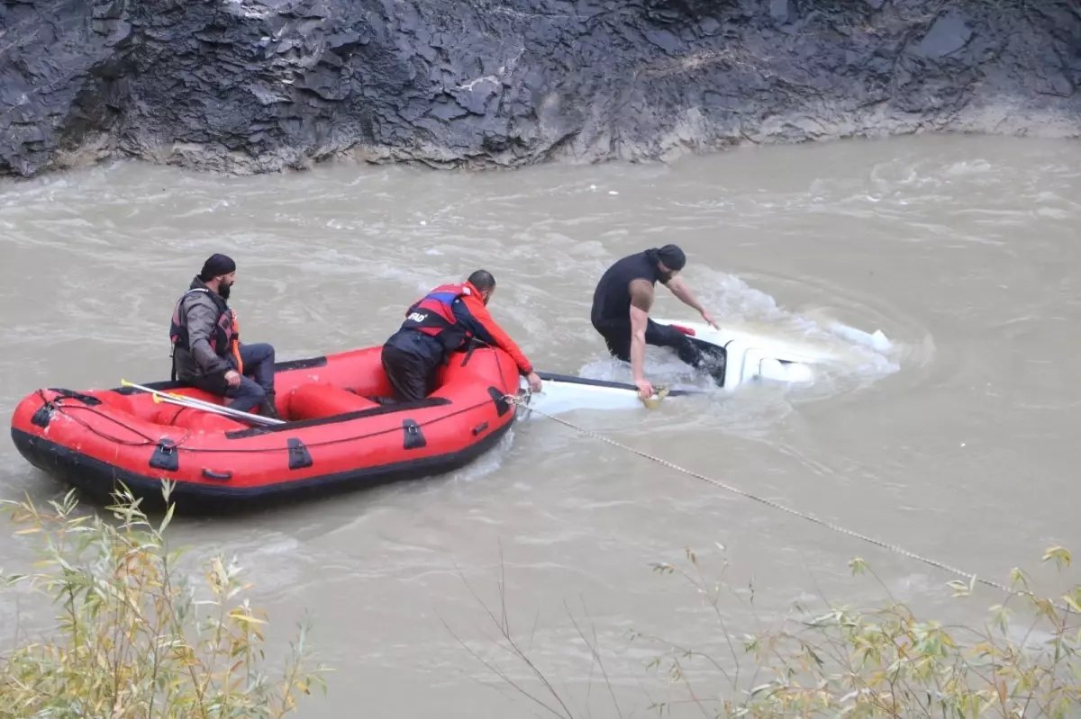 HAKKARİ'de yağışların etkisiyle dağdan kopan kaya parçasından kurtulmak isteyen sürücünün manevra yaptığı kamyonet, yaklaşık 200 metre yükseklikten Zap Suyu'na yuvarlandı. Araçta sıkışan 4 kişiyi ekipler botlarla ulaşarak kurtardı.