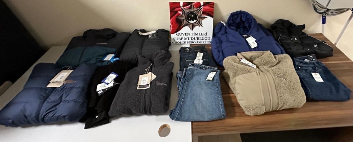 Şüphelilerin kullandıkları araçta yapılan aramada, farklı mağazalardan çalındığı belirlenen çok sayıda giyim eşyası ele geçirildi.