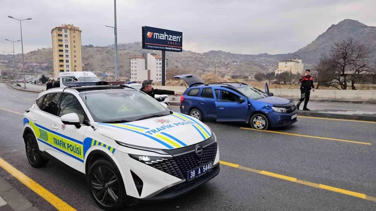 Edinilen bilgiye göre Kocasinan ilçesi Ray Caddesi üzerinde devriye atan polis ekipleri, durumundan şüphelendikleri İ.S.T. idaresindeki 38 SA 020 plakalı araca 'dur' ihtarında bulundu. Ekiplerin ihtarına uymayan sürücü kaçmaya başlarken, polis ekipleri de peşlerine düştü. Kovalama sırasında 3 polis aracına çarpan araç yaklaşık 30 kilometrelik kaçışın ardından Melikgazi ilçesine bağlı Esentepe Mahallesi Abdulhamit Han Bulvarı üzerinde sıkıştırıldı. Polis ekipleri aracın lastiklerine ateş ederken, durdurulan aracın şoförü ile yanındaki Y.C.K. gözaltına alındı. Yapılan incelemede araç sürücüsünün ehliyetinin olmadığı ve yoklama kaçağı olduğu belirlendi. Araç da ekiplerin incelemesinin ardından çekici ile kaldırıldı.