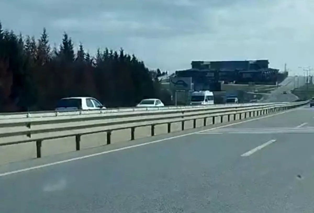 D-100 karayolunda meydana gelen olayda, bir sürücü ana yola ters yönden girerek araçların arasından tehlikeli bir şekilde ilerledi. Diğer sürücülerin korna ve selektörlü uyarılarını dikkate almayan şahıs, hem kendi canını hem de trafiği tehlikeye attı.