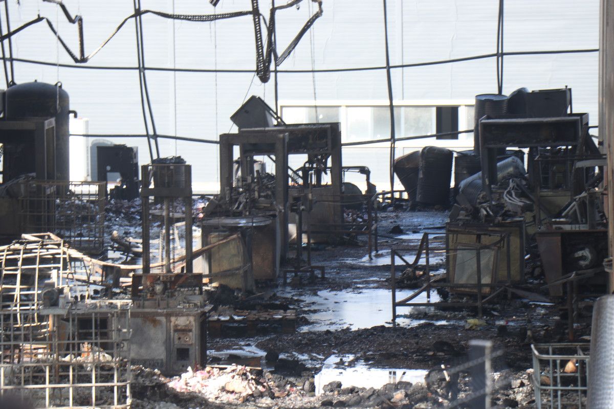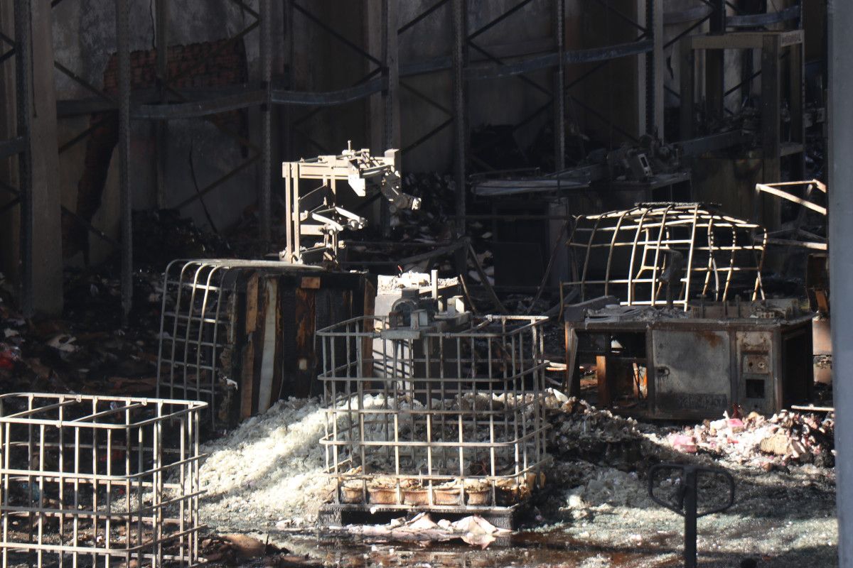 Yangının ardından bugün tesisin içi görüntülendi. Tesisin tamamen kullanılamaz hale geldiği ve içerideki ürünlerin küle döndüğü görüldü.
