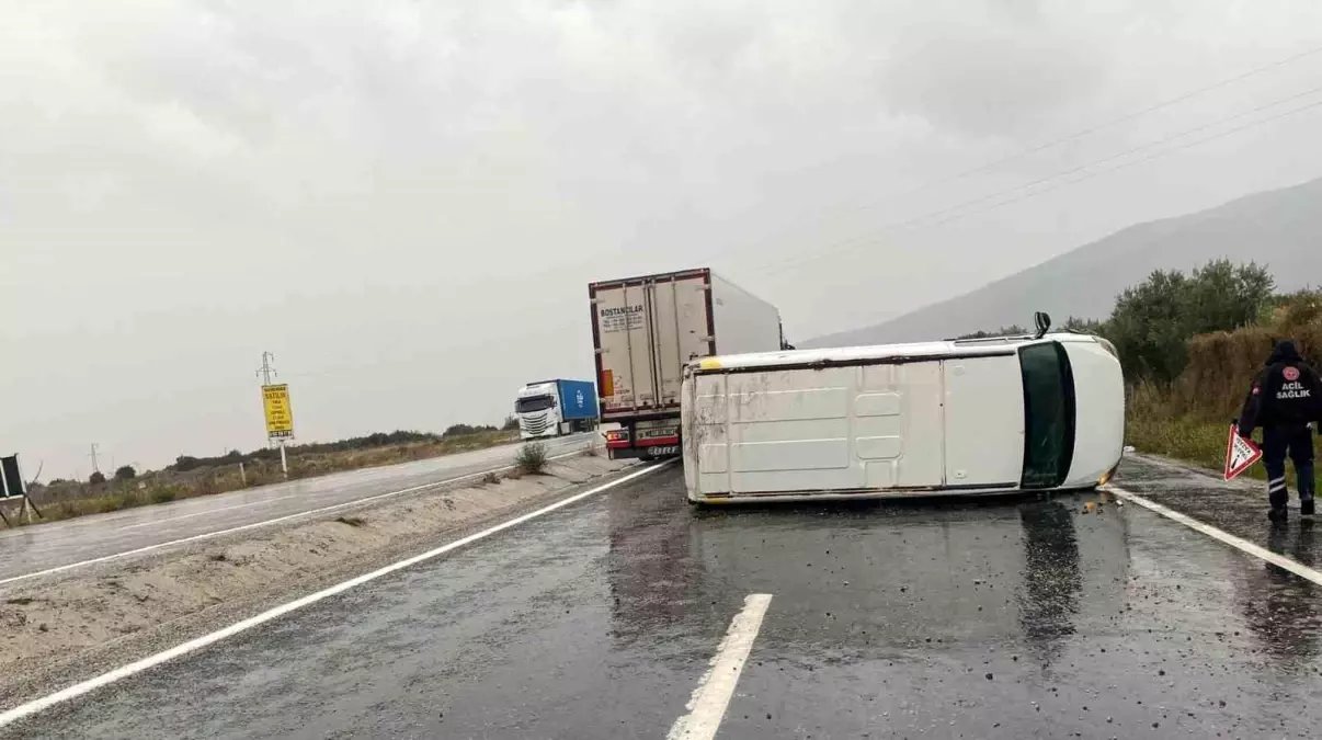 Denizli'nin Buldan ilçesinde seyir halindeyken devrilen minibüsün sürücüsü yaralanırken, olay yerine sağlık ve polis ekipleri sevk edildi.