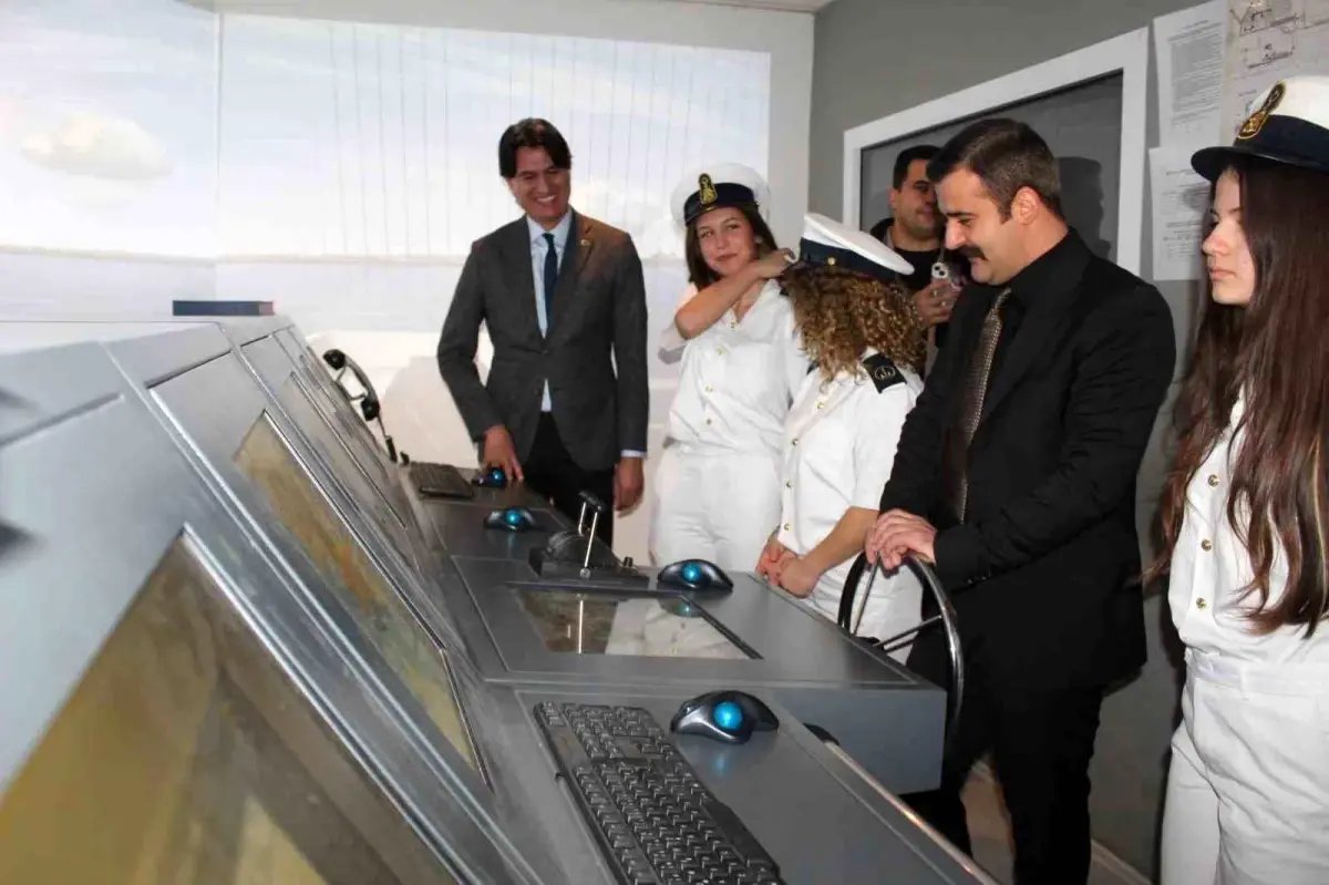 Muğla'nın Köyceğiz ilçesinde Kaymakam Mert Kumcu, Şehit Ömer Halisdemir Denizcilik Mesleki ve Teknik Anadolu Lisesi'nde kullanılan gemi simülasyon laboratuvarını inceledi.