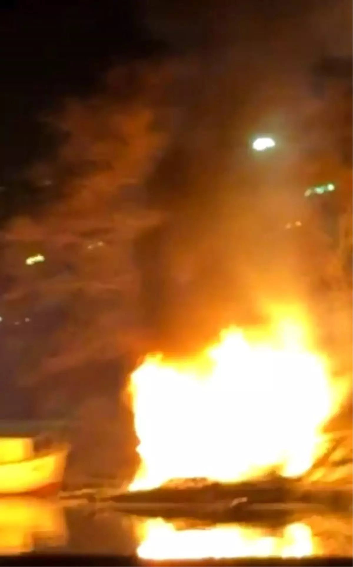 Küçükçekmece'de göl ağzındaki iki kayık alev alev yandı