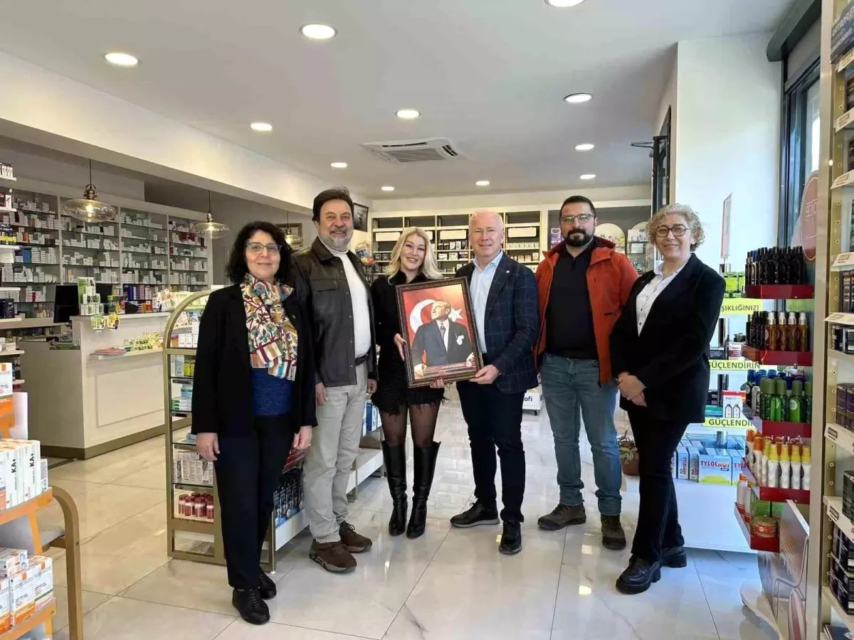 Aydın Eczacı Odası Başkanı Sefa Karaaslan, Kuşadası'nda mesleki konular hakkında eczacıları bilgilendirerek ziyaret gerçekleştirdi. Yeni başlayan eczacılara Atatürk Portresi hediye edildi ve mesleki sorunlar ele alındı.