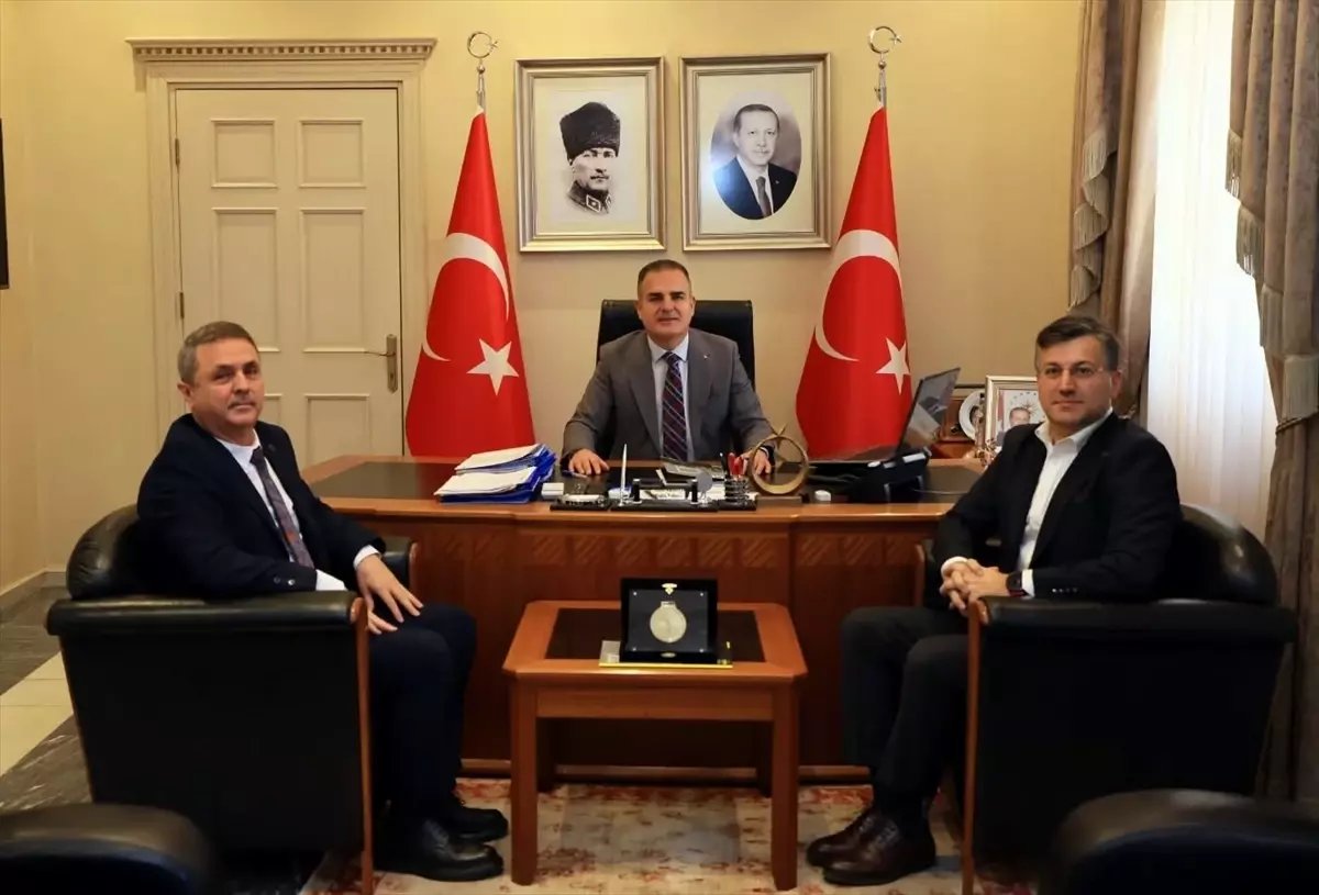 L'Etape Marmaris by Tour de France Genel Direktörü Ömer Kafkas ve Muğla Gençlik ve Spor İl Müdürü Musa Kazım Açıkbaş, Muğla Valisi İdris Akbıyık'ı makamında ziyaret etti.