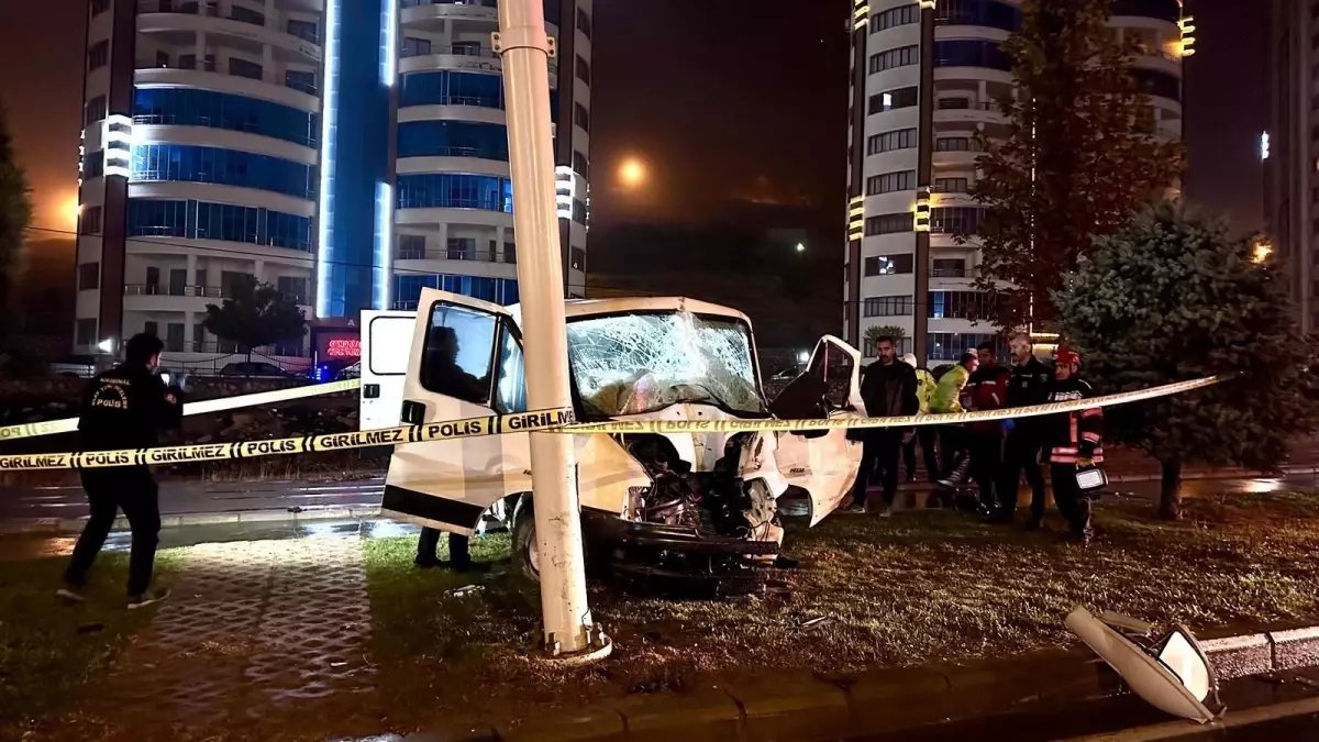 MALATYA'da refüje çıkıp aydınlatma direğine çarpan minibüsün sürücüsü Hasan Tuğaçar (18), hayatını kaybetti.
