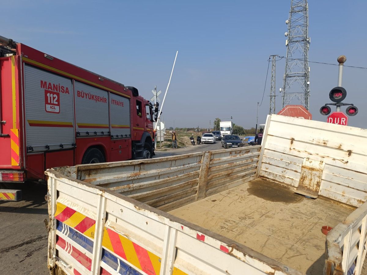Manisa'da tren, hemzemin geçitte kamyonete çarptı