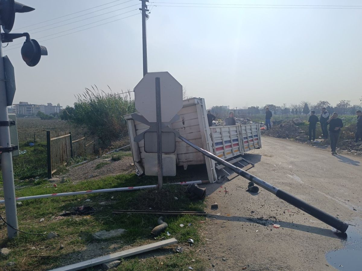 Turgutlu ilçesinde bariyeri kapanan hemzemin geçitten geçmeye çalışan kamyonete yolcu treni çarptı. Kamyonetin kasasının koptuğu kazada şans eseri ölen yada yaralanan olmadı.