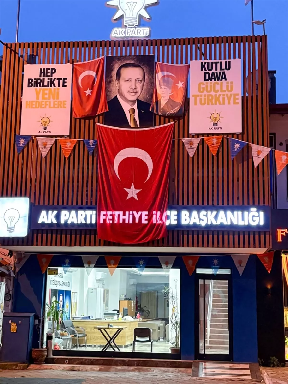 Muğla'da AK Parti il ve ilçe binalarına Türk Bayrağı asıldı