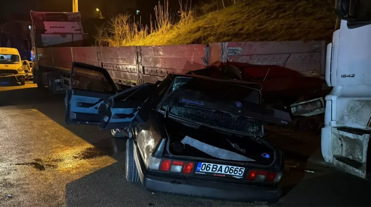 Otomobil, park halindeki TIR'a çarptı: 1'i ağır, 2 yaralı