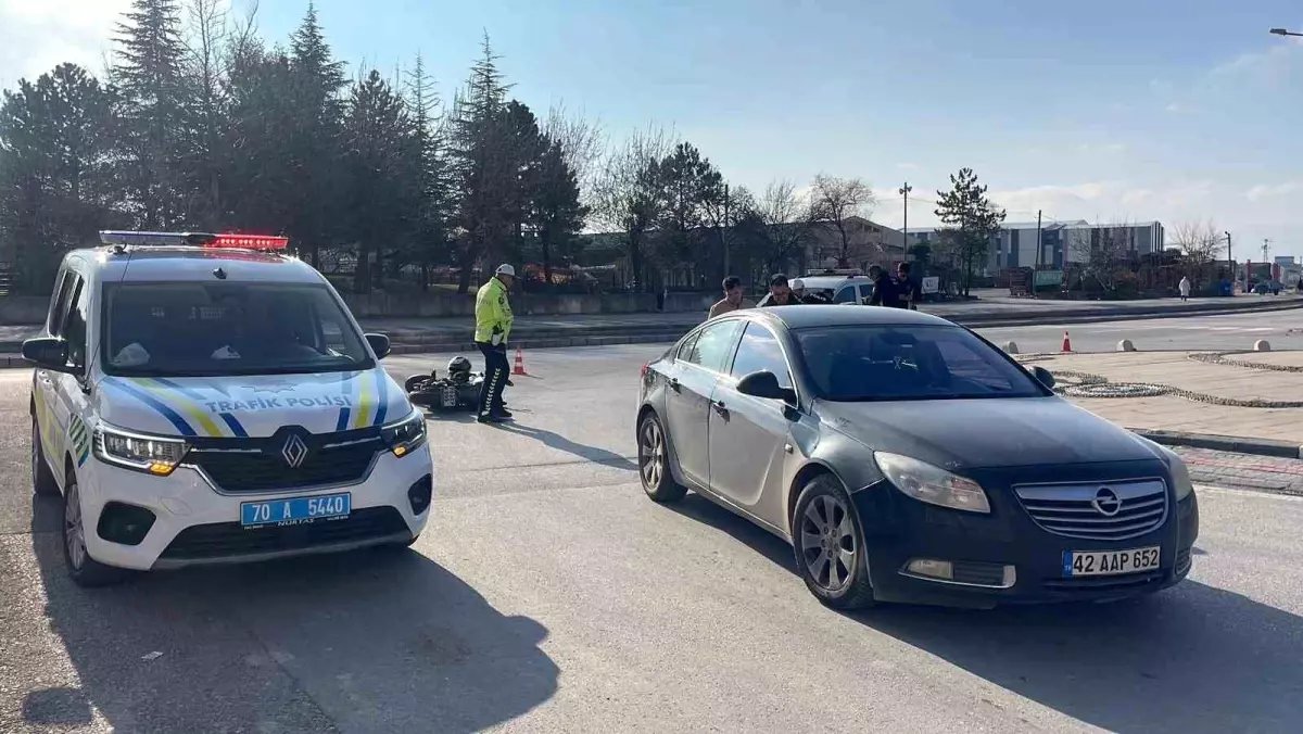 Karaman'da otomobille çarpışan motosikletin sürücüsü yaralandı.