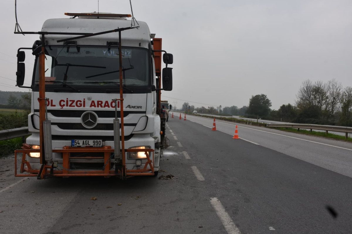 Karayolları adına çalışan şirkete ait 54 AGL 990 plakalı kamyonun dorsesinde bulunan şerit çizme makinesinin kazanı, henüz belirlenemeyen bir nedenle patladı. Patlama sonucu E.C.E. (28) ve E.Y. (30) yaralandı.