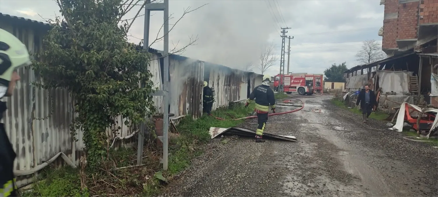 Samsun'da Şantiye Deposunda Yangın