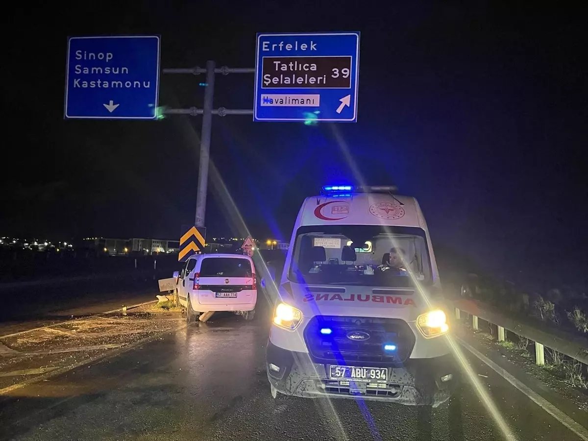 Sinop'ta otomobil yön tabelasının direğine çarptı, 2 kişi yaralandı