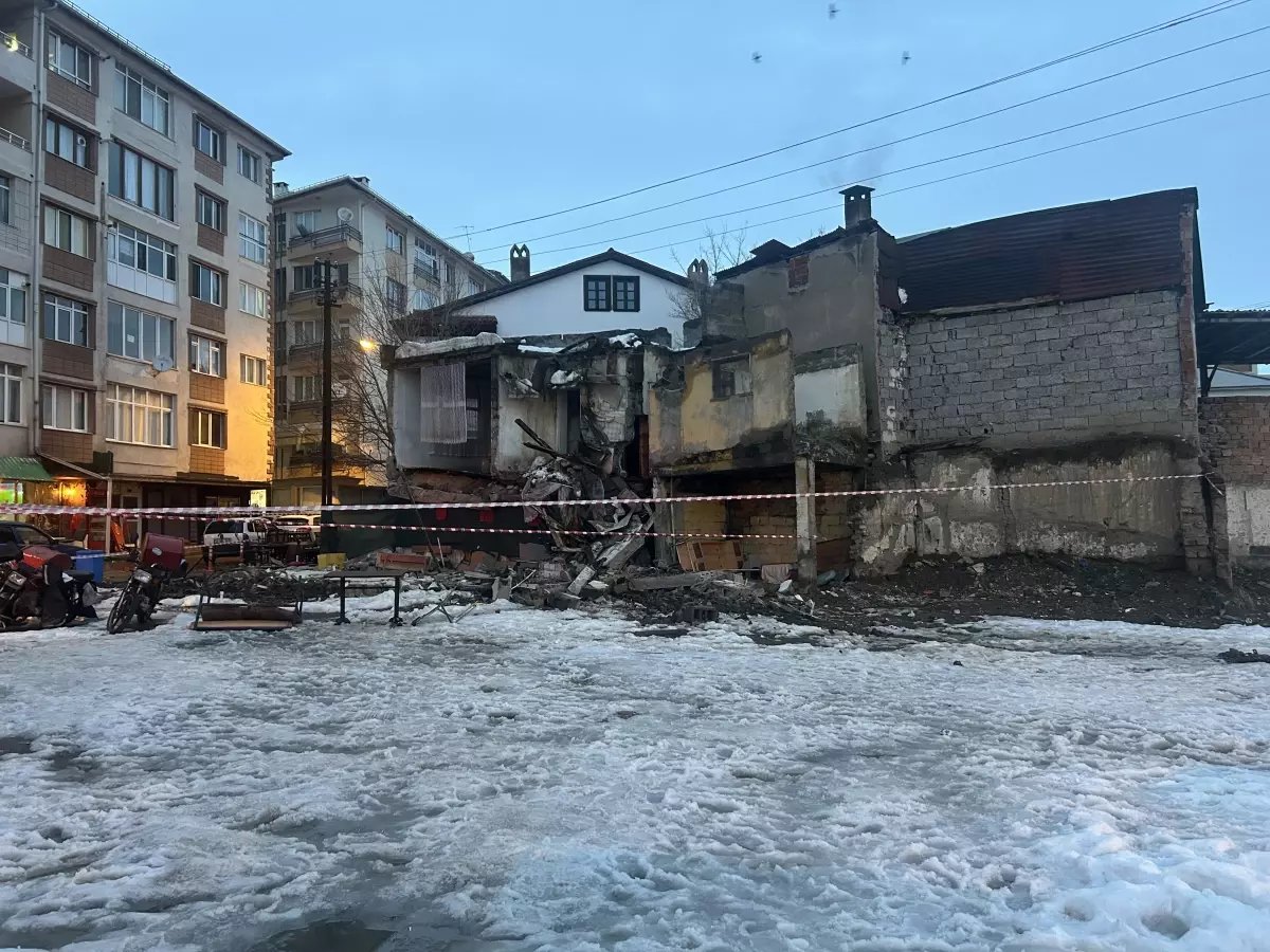 SİVAS'ta 2 yıldır boş durumda bulunan 2 katlı metruk bina kısmen çöktü.