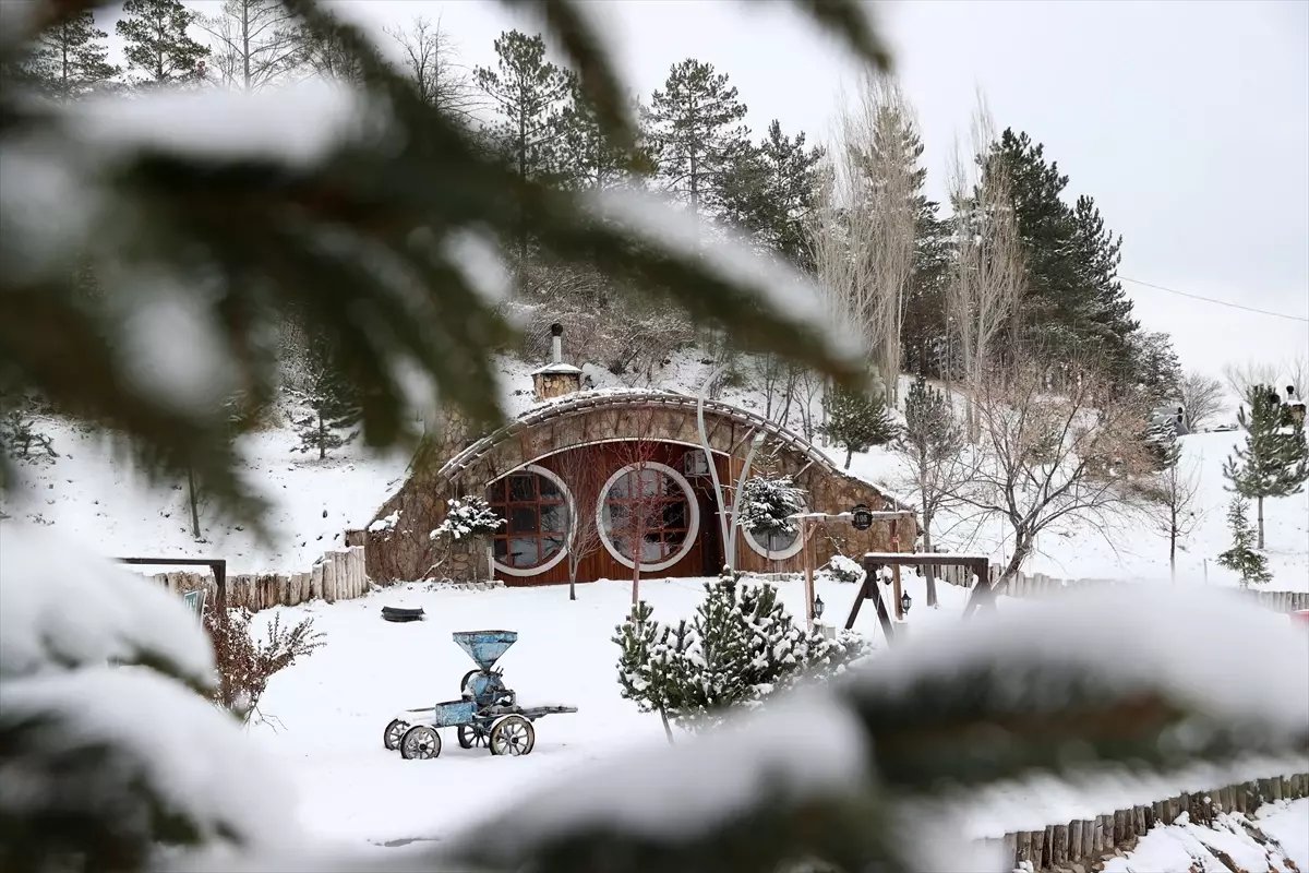 Sivas'ta etkili olan karın ardından, Sivas Belediyesince "Yüzüklerin Efendisi" filmindeki "Hobbit Evleri"nden esinlenerek inşa edilen yamaç evleri beyaz örtüyle kaplandı.