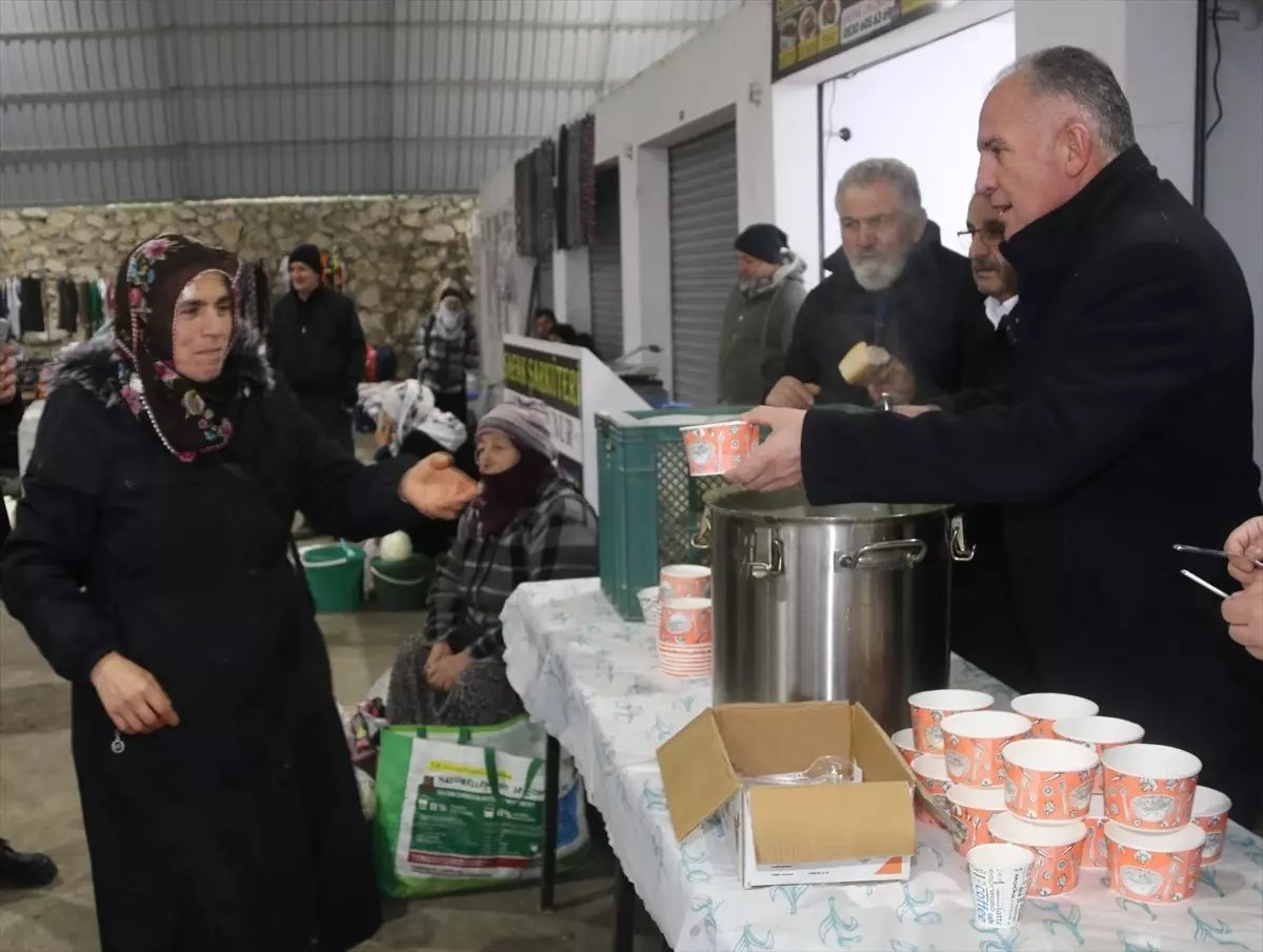 İlçede Perşembe günleri kurulan halk pazarında sabah erken saatlerde tezgahlarını açan pazarcı esnafına çorba ikram edildi.