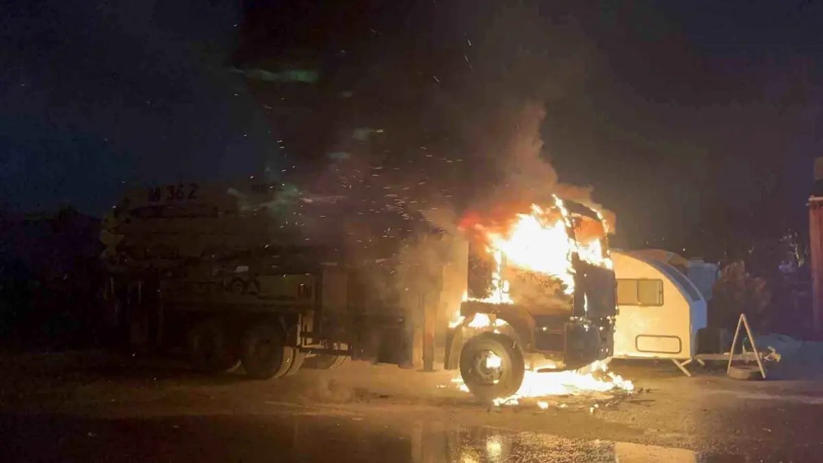 Öte yandan, yanan aracın yanında bulunan bir karavan da yangın esnasında maddi zarara uğradı.