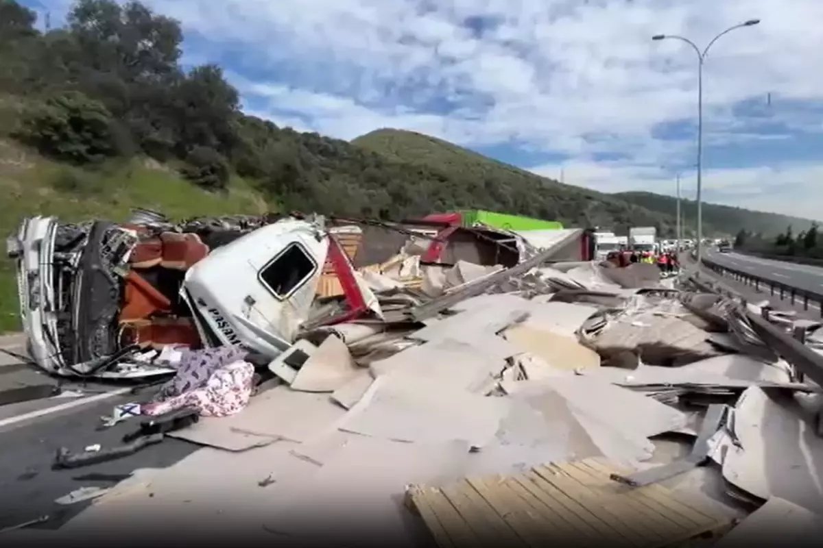 TEM'de iki tır çarpıştı! İstanbul yönü trafiğe kapatıldı