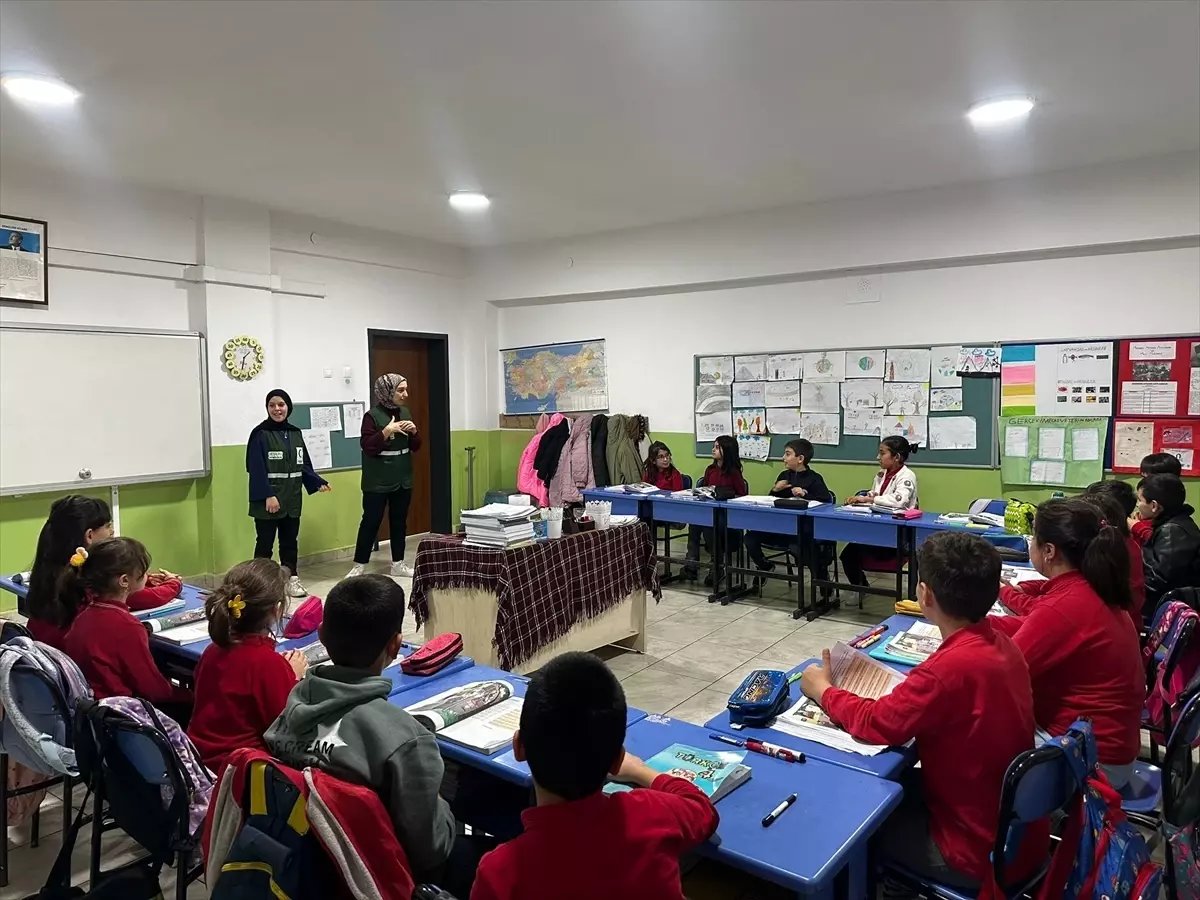 Gazipaşa İlkokulunda düzenlenen etkinlikte, bağımlılıklarla mücadele alanında faaliyet gösteren Yeşilay'ın çalışmaları hakkında bilgi verildi.