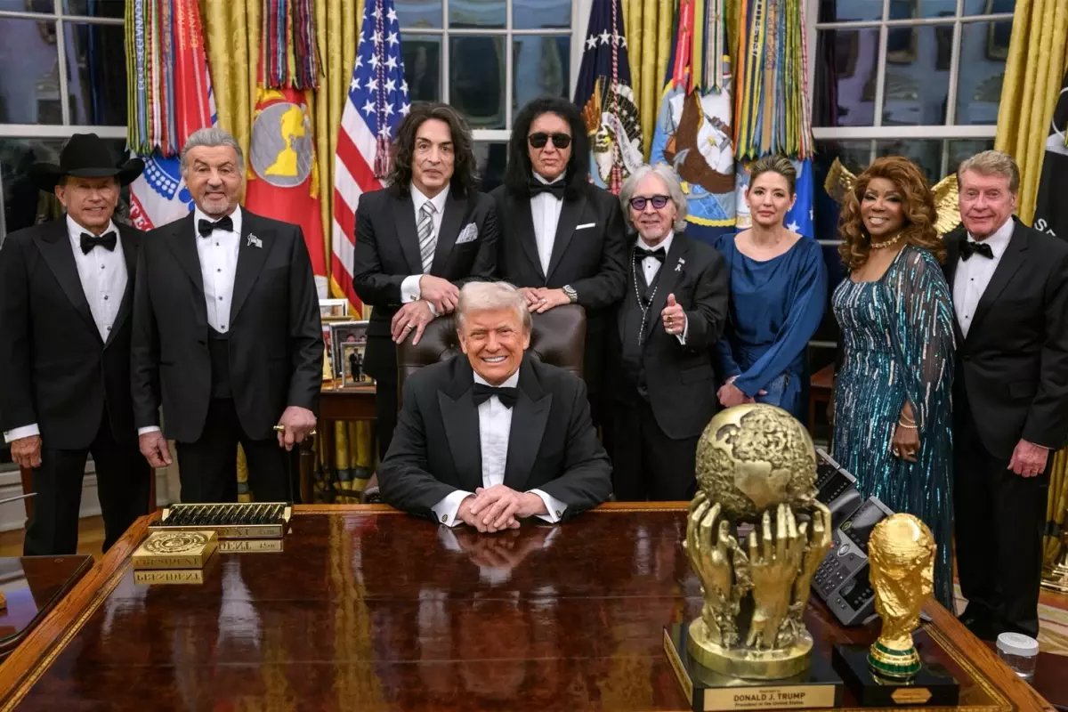 ABD Başkanı Donald Trump, Kennedy Center Onur Ödülleri sahiplerini Beyaz Saray'da ağırladı. Oval Ofis'te düzenlenen törende Trump; Hollywood'daki temsilcisi olarak anılan ünlü oyuncu Sylvester Stallone, KISS grubu üyeleri, şarkıcı Gloria Gaynor, İngiliz oyuncu Michael Crawford ve country müzik sanatçısı George Strait'e madalyalarını takdim etti.
