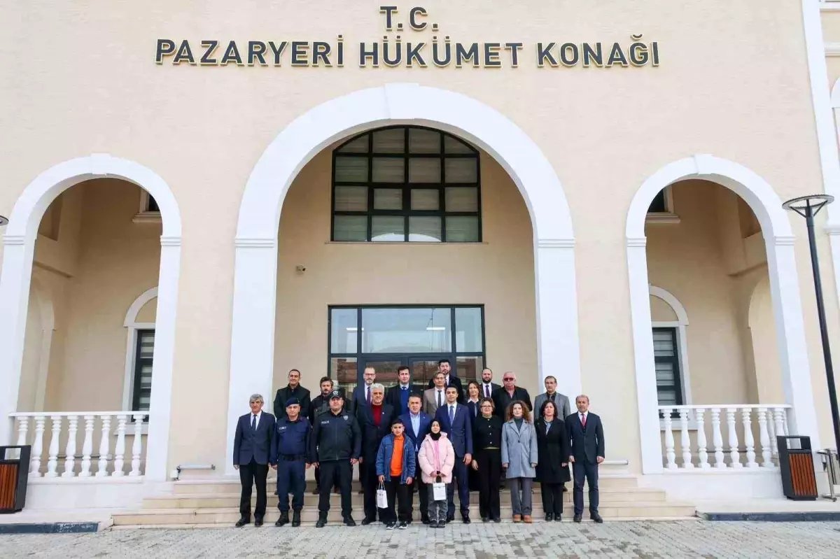 110. Dönem Kaymakamlık Kursu'nu birincilikle tamamlayarak Pazaryeri'ni görev yeri olarak tercih eden Kaymakam Kara'yı makamında ziyaret eden Vali Sözer, ilçe genelinde yürütülen çalışmalar, kamu hizmetlerinin işleyişi ve planlanan projeler hakkında bilgi aldı. Ziyarette Pazaryeri'nin ihtiyaçları, vatandaşlara sunulan hizmetlerin iyileştirilmesi ve önümüzdeki döneme ilişkin hedefler üzerine kapsamlı değerlendirmelerde bulunuldu. Vali Sözer, ziyareti kapsamında kısa süre önce hizmete açılan yeni Pazaryeri Hükümet Konağı'nda da incelemelerde bulundu. Birçok kamu kurumunu tek çatı altında toplayan yeni binanın vatandaşlara daha hızlı, düzenli ve erişilebilir hizmet sunulmasına önemli katkı sağladığı belirtildi. Kurumların işleyişi ve hizmet süreçlerine ilişkin bilgiler alan Vali Sözer, yeni hükümet konağının ilçe için önemli bir kazanım olduğunu ifade etti.